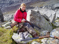 Helene med suksess på rypejakt Olav og Helene har vært på jakt i Raggsteindalen og som bildet viser har familiens nybakte jeger skutt sine første ryper med egen hagle.