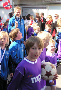 Fredrik og Frithjof har vært på fotballskole I en uke gikk gutta på Sandefjord Ballklubbs fotballskole i Bugården.