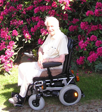 Kaare på plass Rhododendron blomstrer fantastisk i Skutesteinveien og Kaare er på plass i den nye rullestolen sin. Les mer...